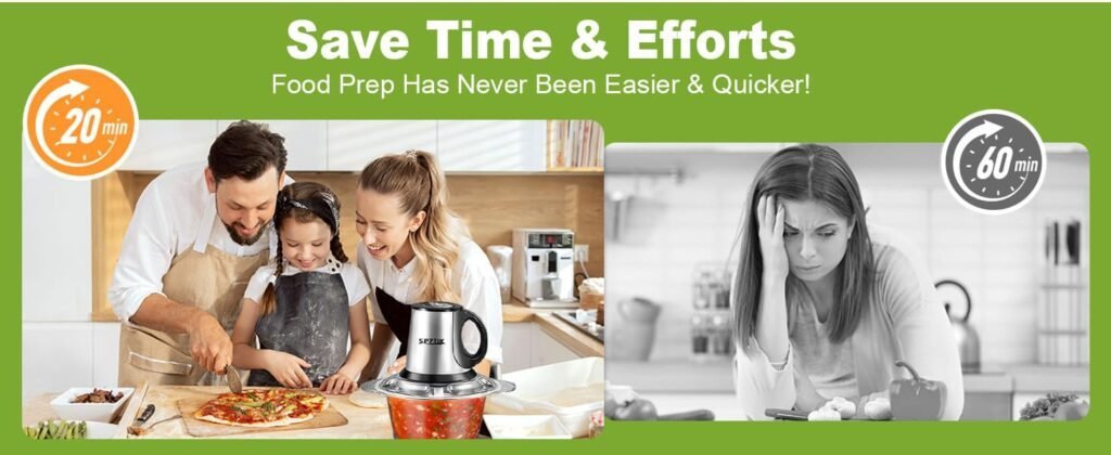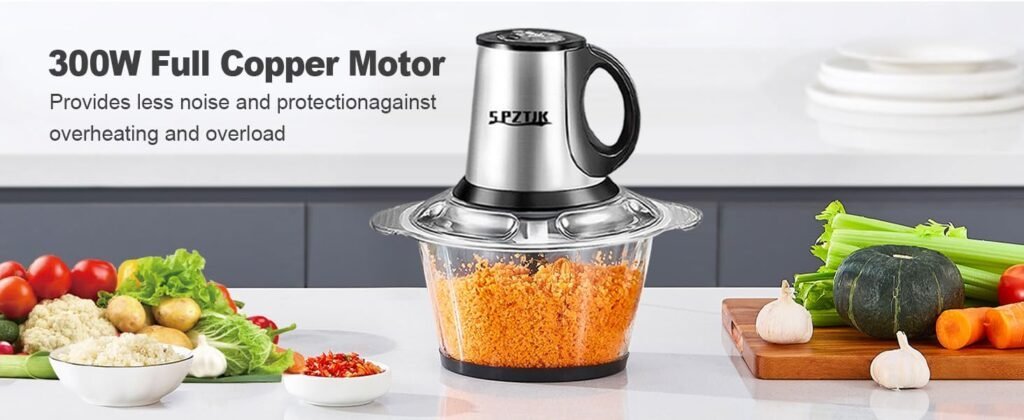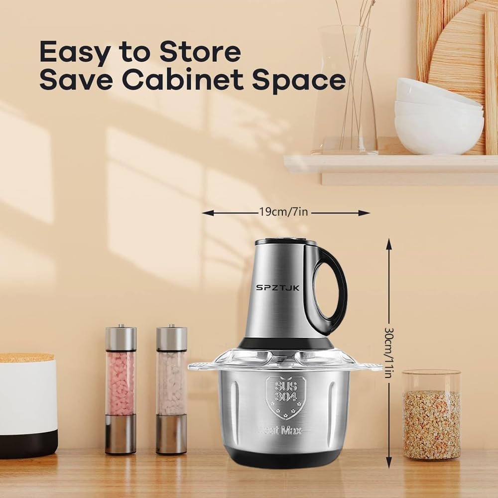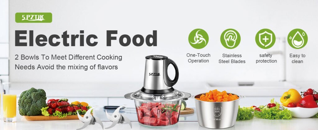 ¡Este robot de corte SPZTJK es una maravilla! Dos cuencos de acero inoxidable y vidrio, perfecto para picar ajo y verduras en segundos.